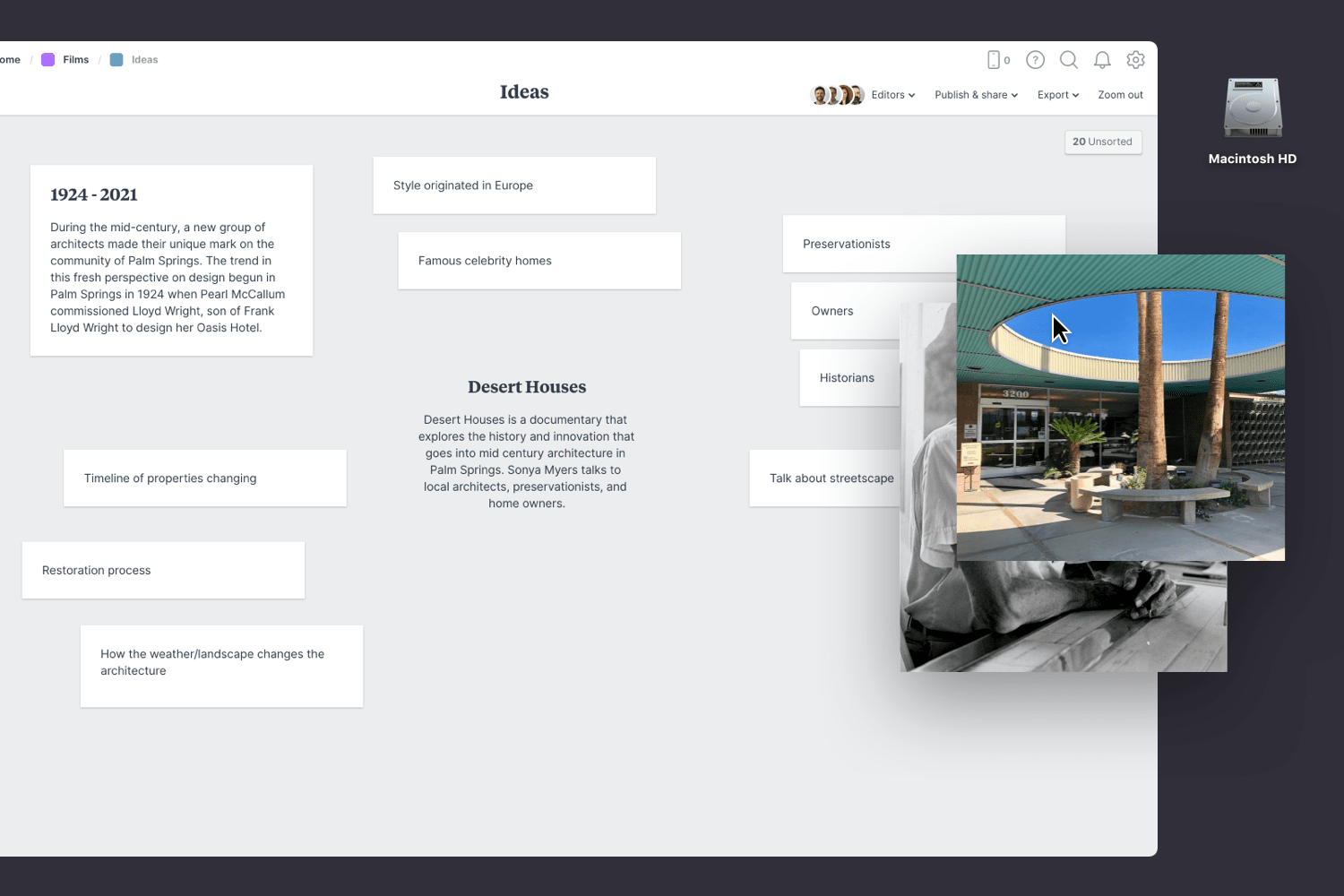 Sometimes it's easier to communicate an idea with an image or video, especially if it's a mood or style you're trying to express. Gather reference imagery, videos and sound and add them into the mix. These can become the foundation for a moodboard as your film project evolves.