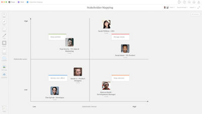 A stakeholder map is a technique you can use to analyse how different people will influence your project. By visualizing people on this matrix will make it easier to see where everyone fits on your project, and the level of communication you should be delivering to each person.